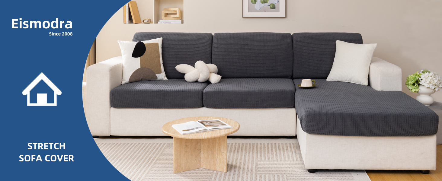 Eismodra Couch Cushion Covers Magic Stretch Sofa Slipcover for 3 Cushion Couch Dogs Pet L Shape 2 Seat Replacement Furniture Protector,Dark Gray(Only 1 Piece)