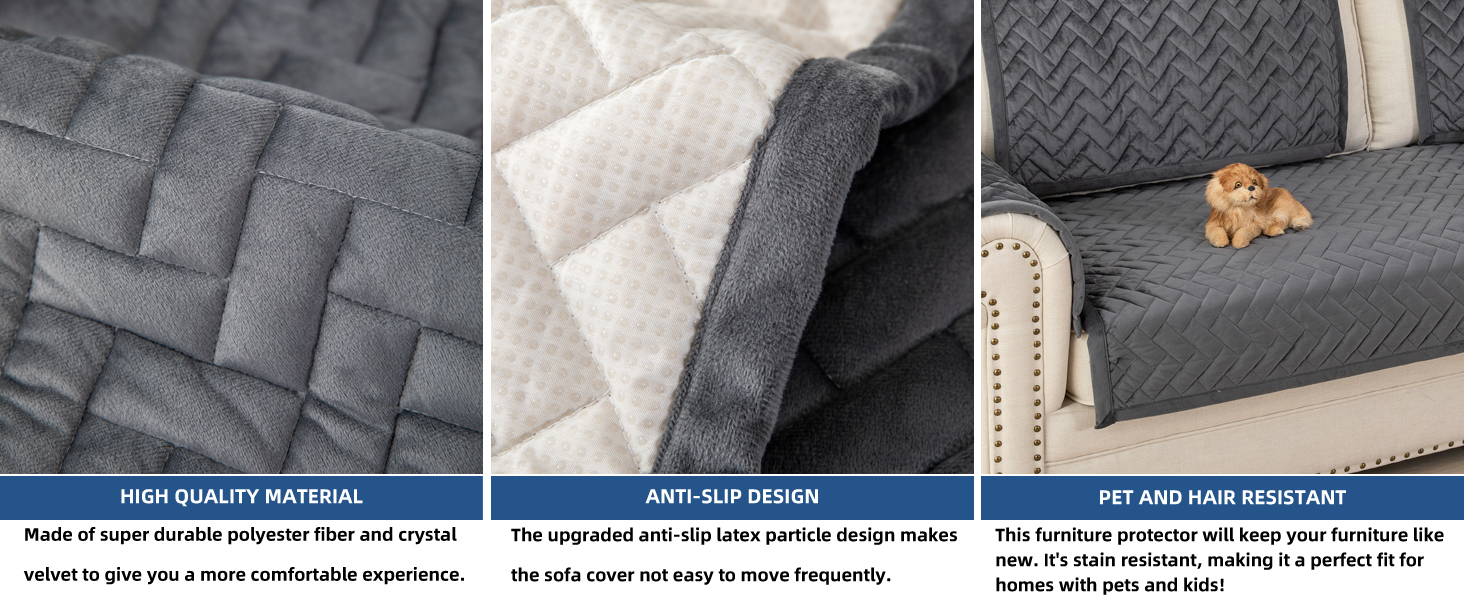 The velvet furniture cover protects your sofa,couch,loveseat,recliner and chair from spills,stains,and pets.It is suitable for all seasons,not only for sofa covers,but also for baby play mat,bedroom carpet,floor pad,window bench mat,etc