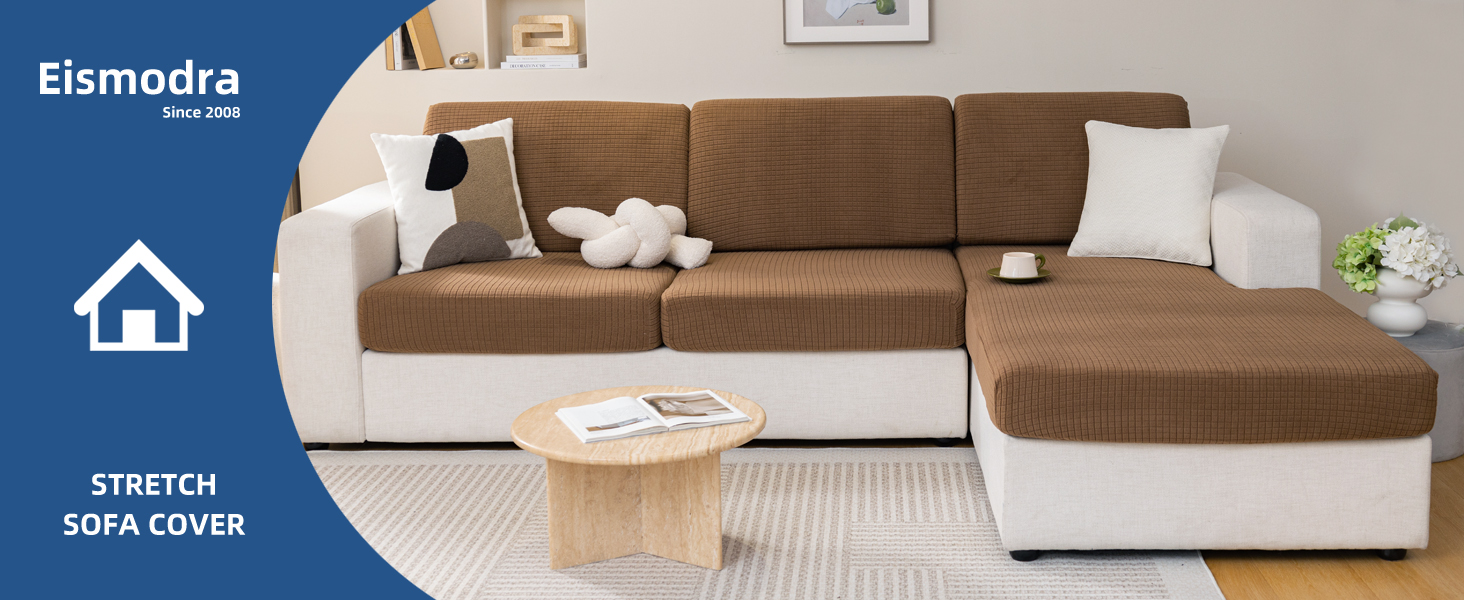 Eismodra Couch Cushion Covers Magic Stretch Sofa Slipcover for 3 Cushion Couch Dogs Pet L Shape 2 Seat Replacement Furniture Protector,Light Brown(Only 1 Piece)