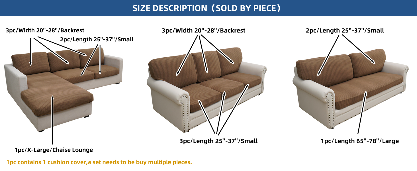 The unique elastic band design makes the installation and disassembly of your products more convenient,the cushion cover can fix in place. High-elastic cushion covers can adapt to various cushion shapes and styles,fit for 1-2-3 cushion couch,backrest cushion,chaise lounge cushion.